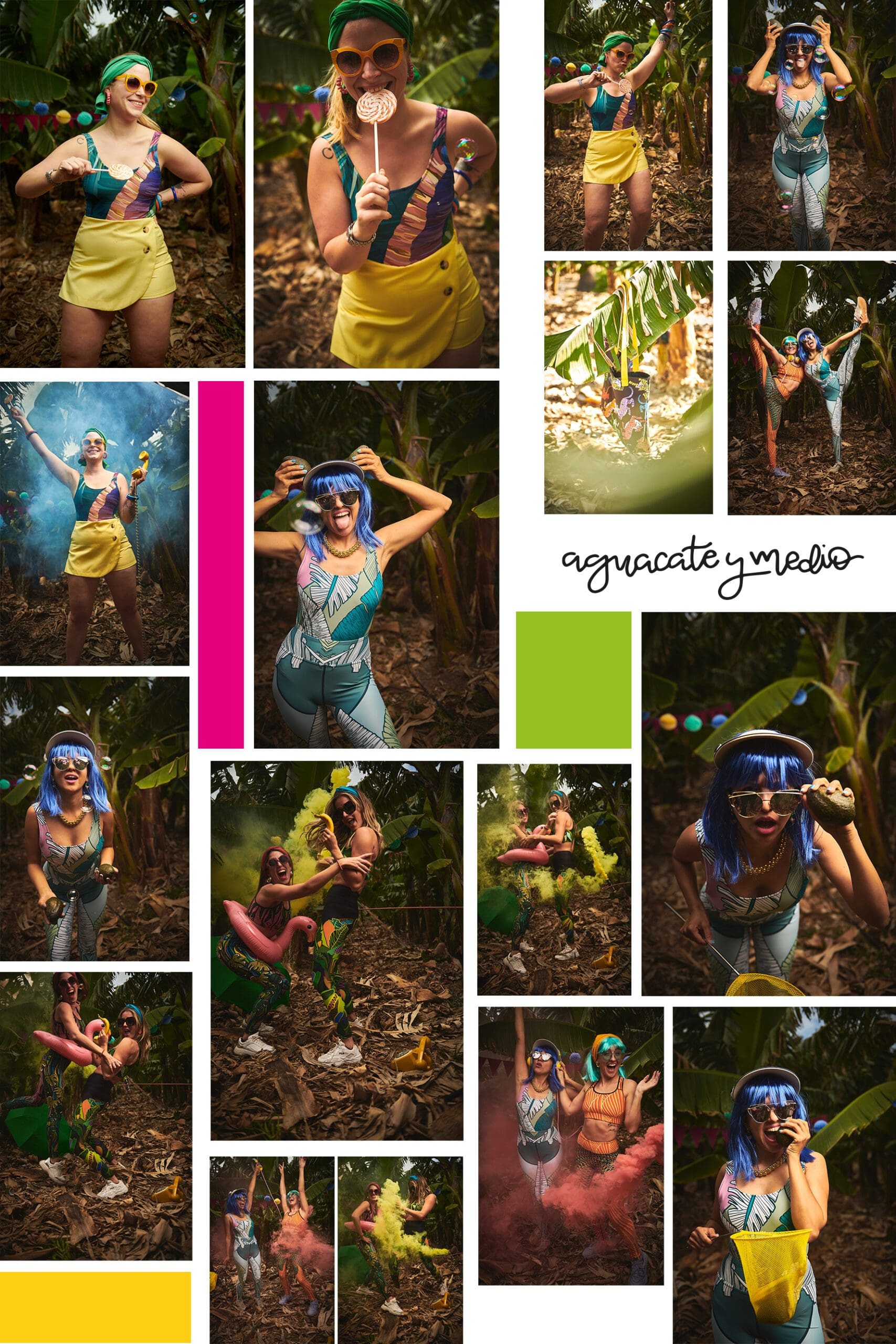 La sesión de fotos fue un éxito rotundo gracias a la combinación perfecta de un escenario idílico y unas modelos increíblemente atrevidas y divertidas. En la platanera, la ropa colorida y los patrones divertidos de «Aguacate y medio» destacaron aún más gracias al contraste con la frondosidad de los árboles. El resultado fueron unas fotos espectaculares que transmiten la energía y la autenticidad de la marca.