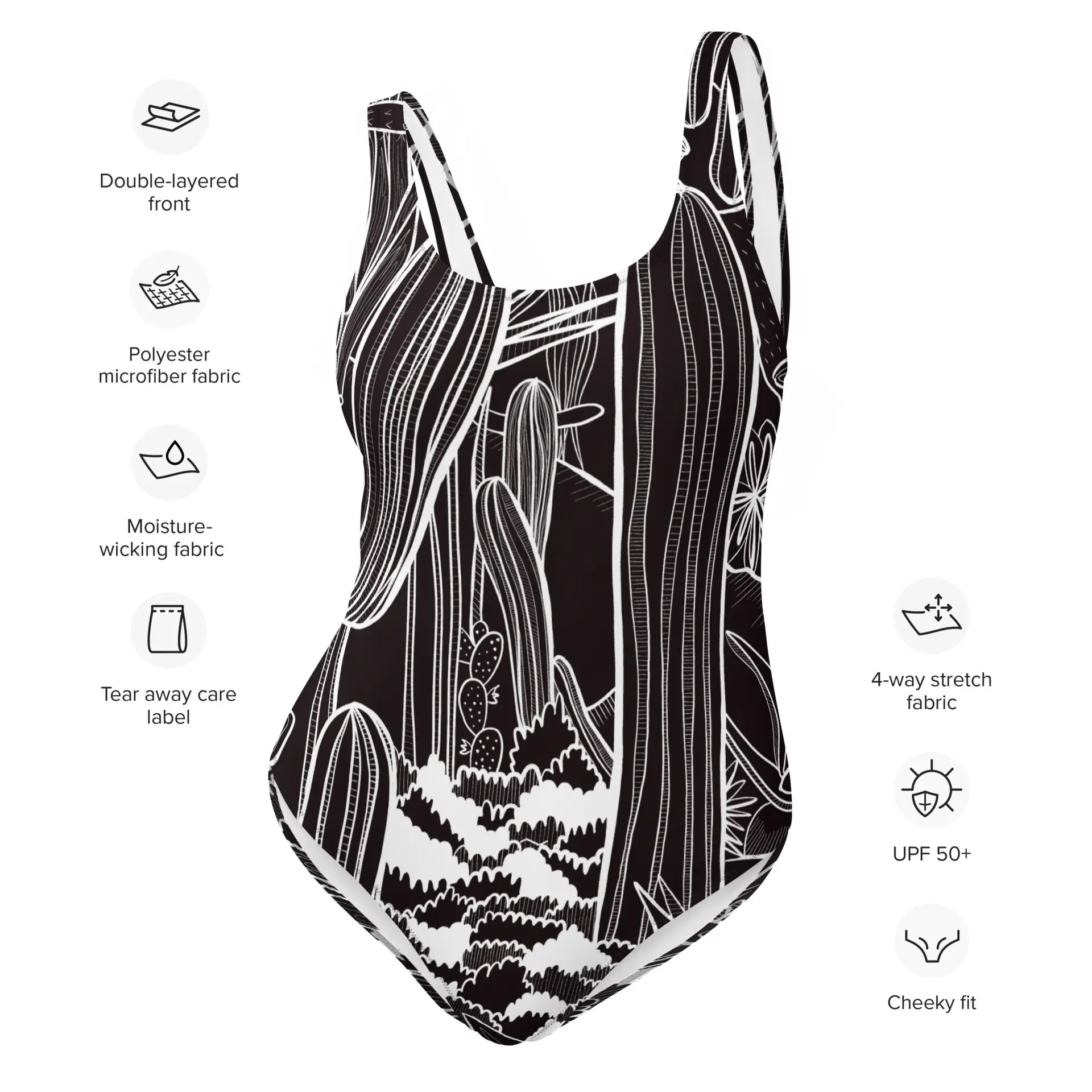 - Bañador de una pieza. Cuello y espalda baja redondos. Pespunte en zigzag. Forro delantero. Amplia variedad de tallas.