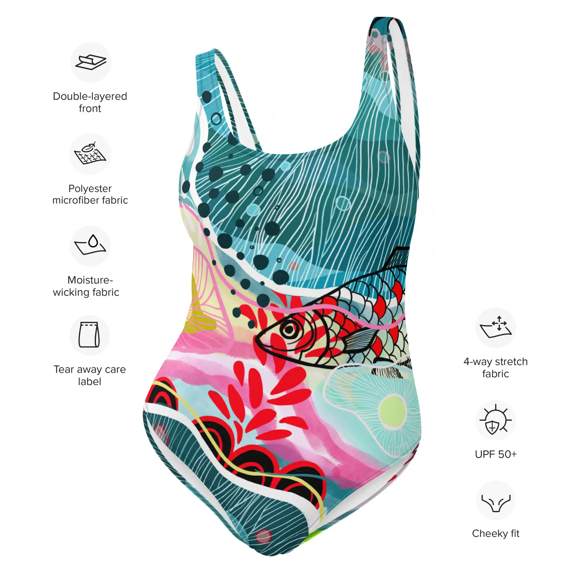 - Bañador de una pieza. Cuello y espalda baja redondos. Pespunte en zigzag. Forro delantero. Amplia variedad de tallas.