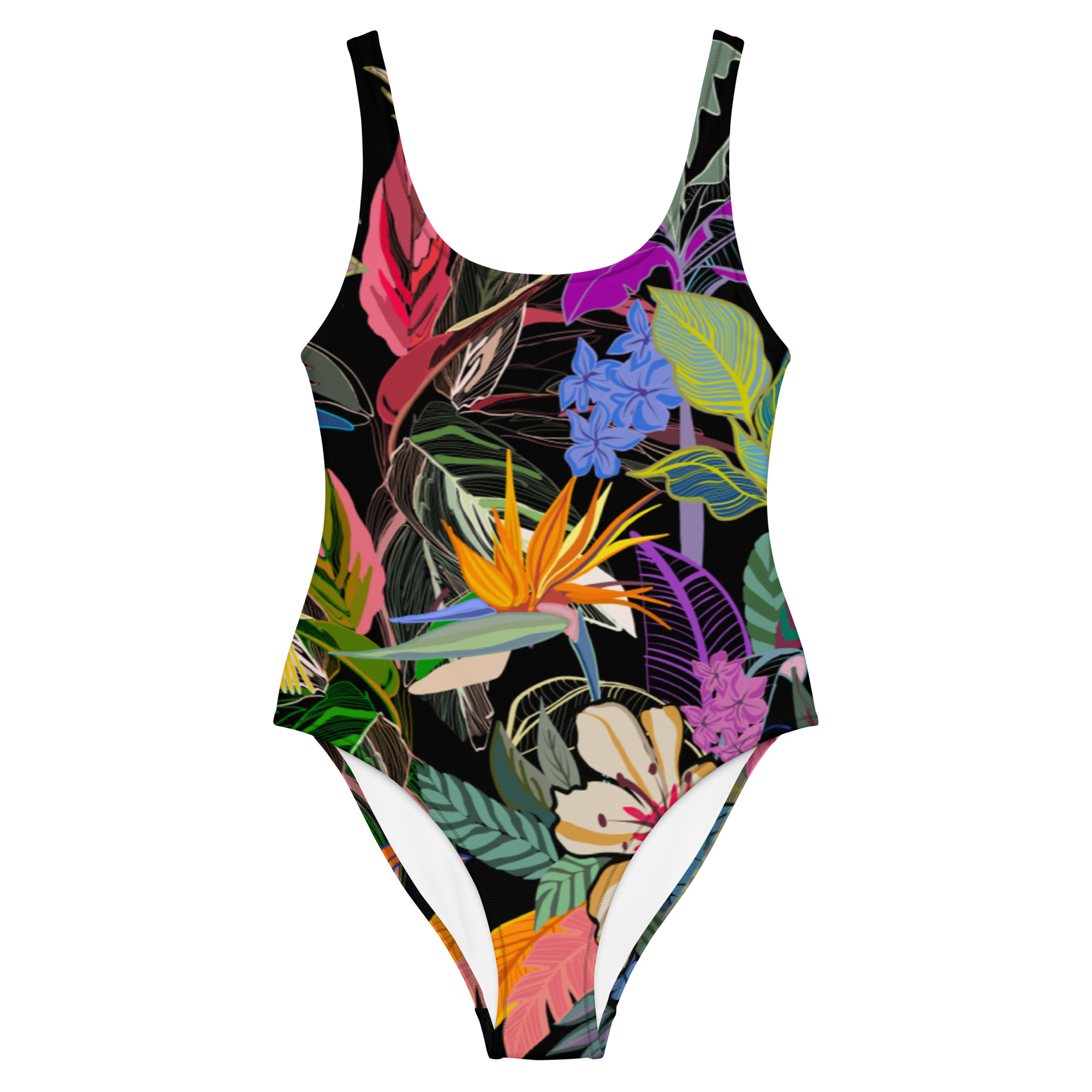 • Bañador de una pieza. Cuello y espalda baja redondos. Pespunte en zigzag. Forro delantero. Amplia variedad de tallas.
