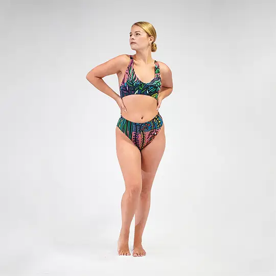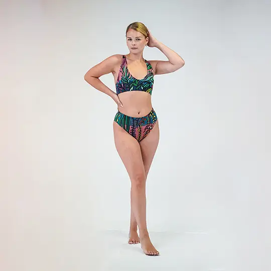 El bikini es de una calidad exquisita. Talla perfectamente, la tela es gruesa, es decir, de tela de bikini buena. Sujeta muy bien la barriga y el top hace una buen escote sin ser exagerado. Un 10 de 10.